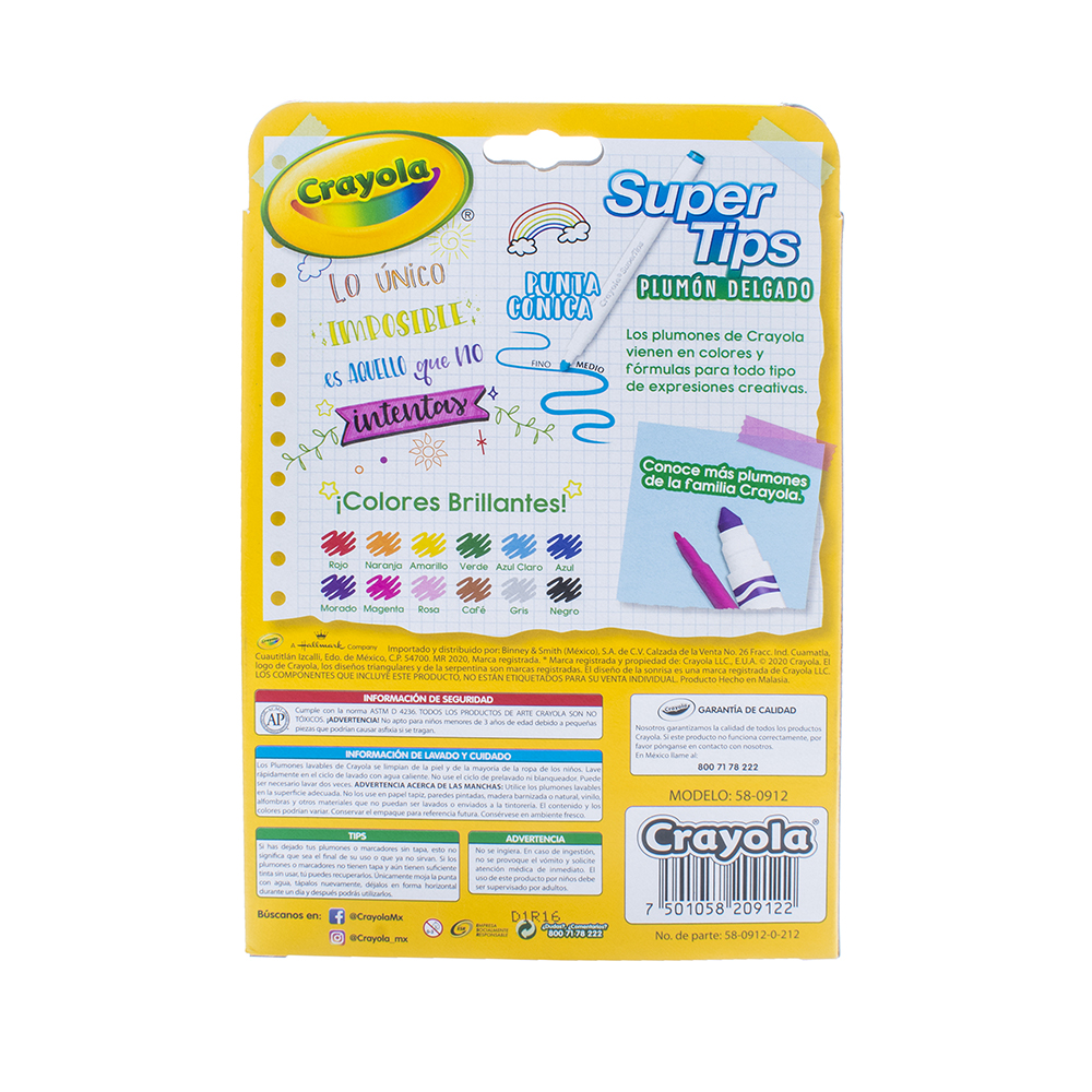 PLUMONES CRAYOLA SUPERTIPS C/12 PZA