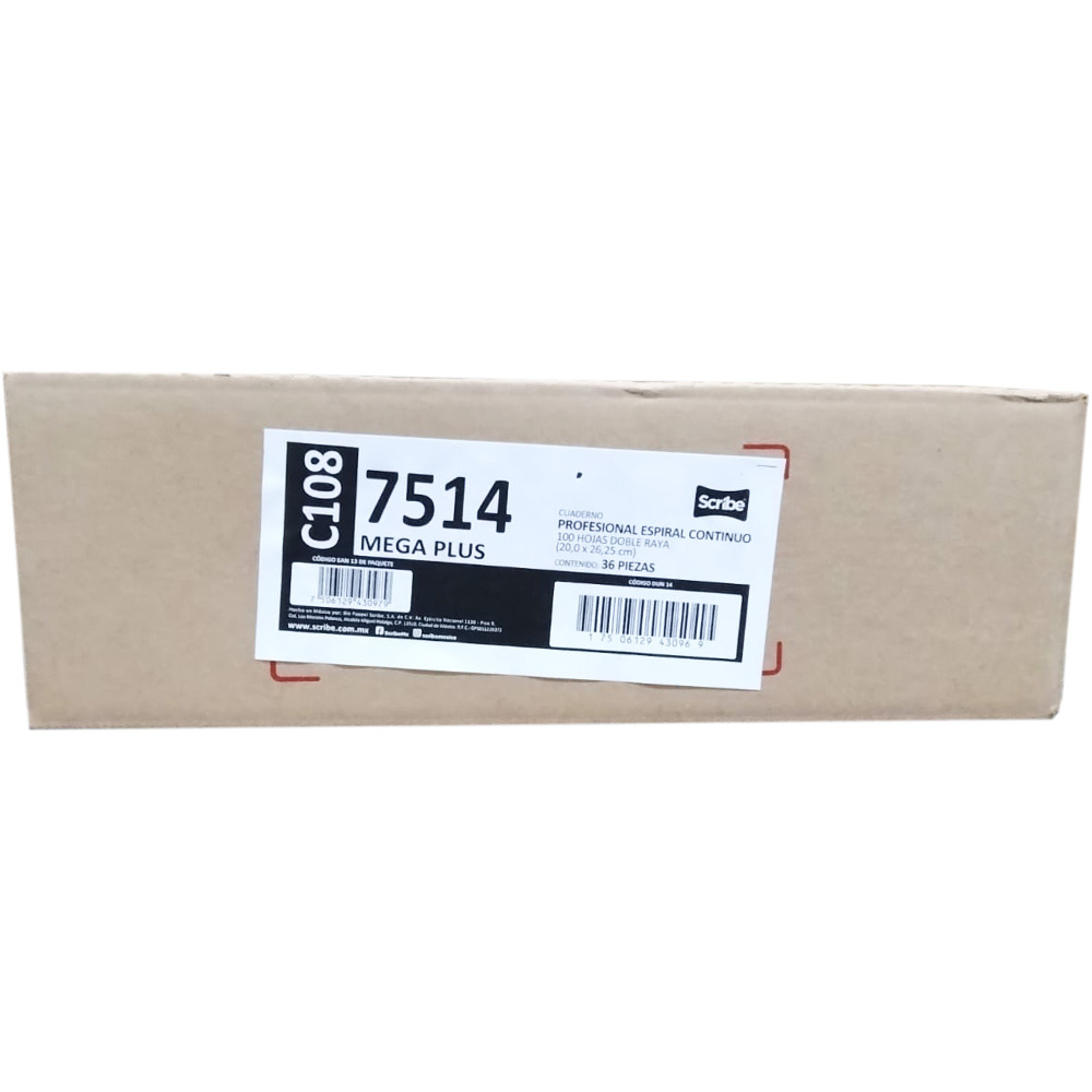 CUADERNO SCRIBE PROFESIONAL BLANCO MEGA 100 HOJAS C/36 PZA